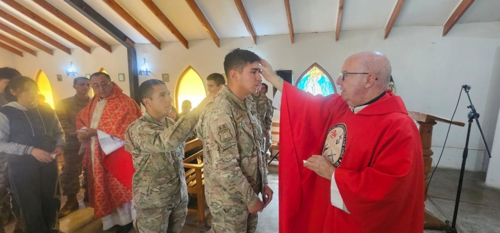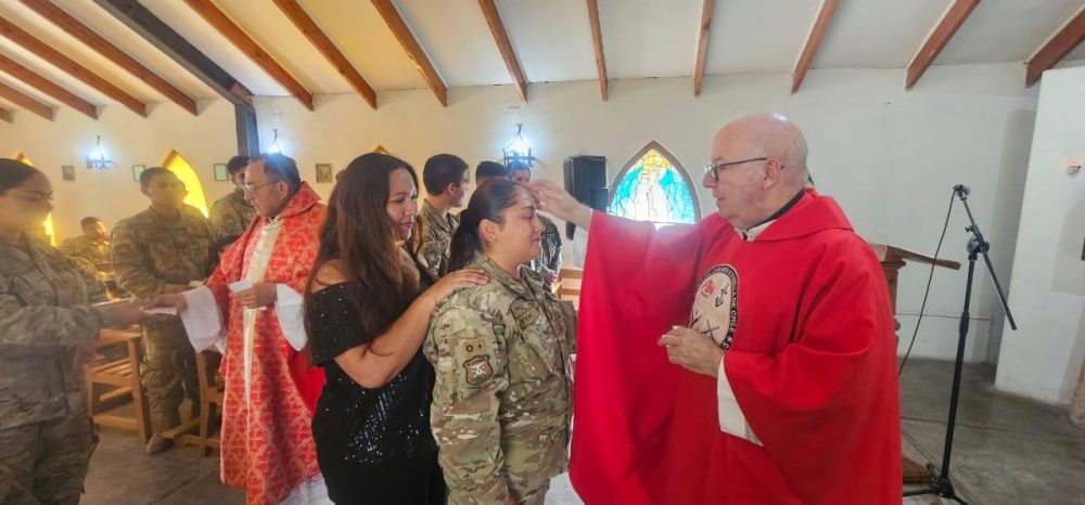Soldados conscriptos, hombres y mujeres, que cumplen sus servicio militar en el Destacamento de Montaña n.3 Yungay, recibieron el sacramento de la Confirmación.