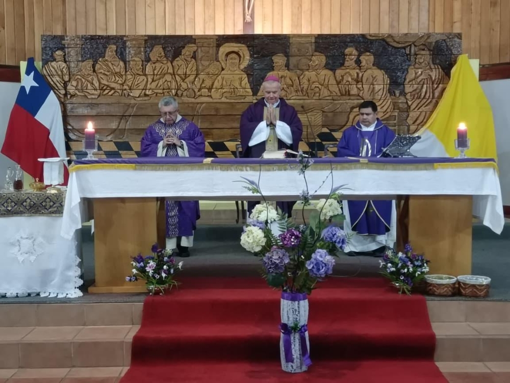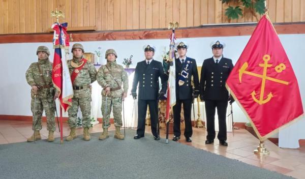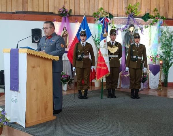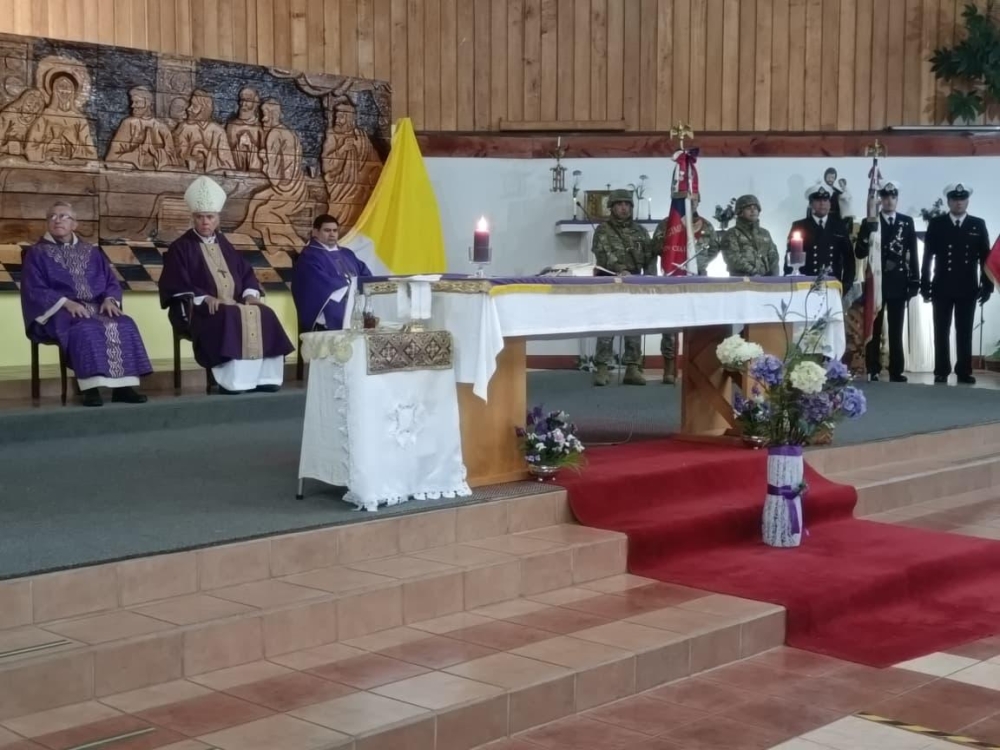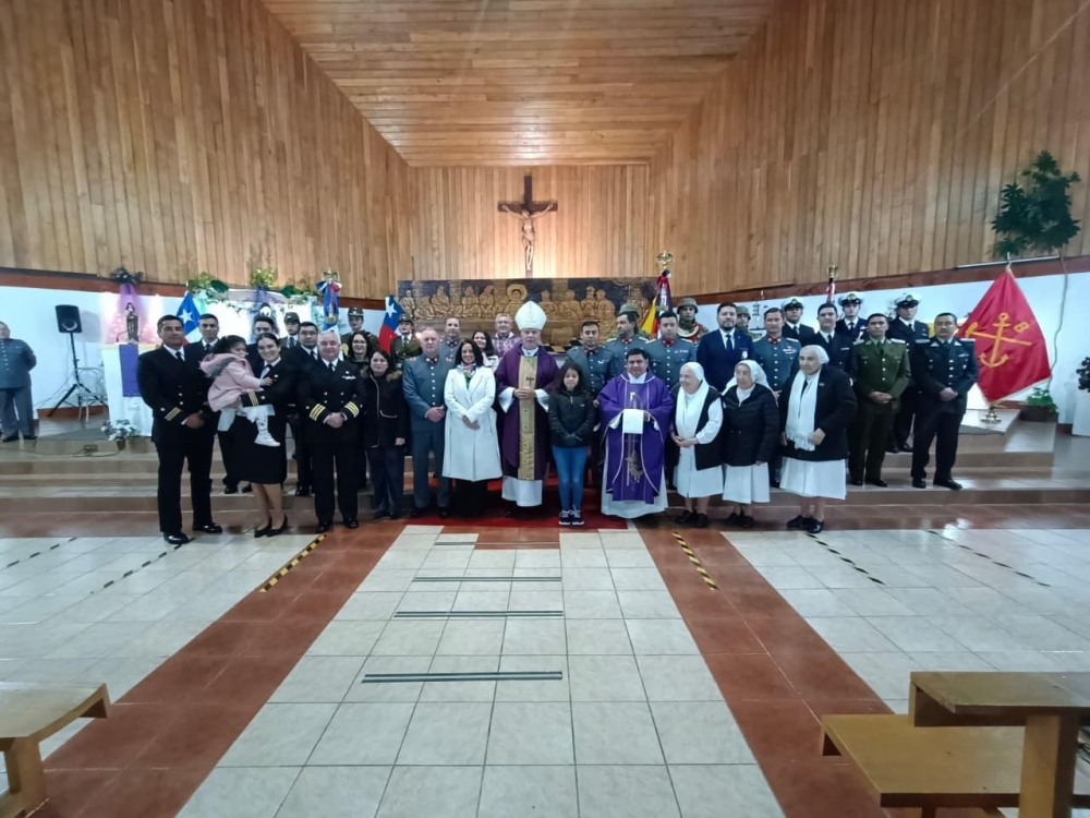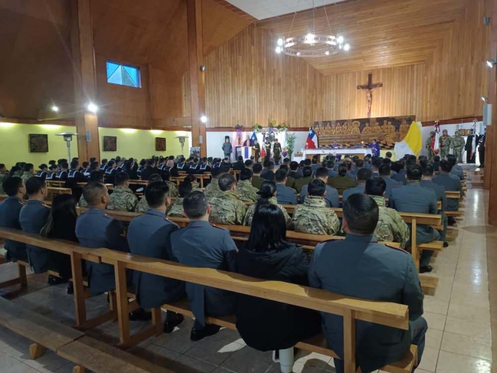 Con la participación de las diferentes delegaciones de las fuerzas Armadas de Orde y seguridad pública, el Obispo Castrense de Chile Monseñor Pedro Ossandón Buljevic, Junto al párroco y capellán ad honorem P. José Vera, Vicario General del Vicariato Apostólico de Aysén y el capellán de Ejército, P. Jorge Mardones, celebraron la Santa Misa.