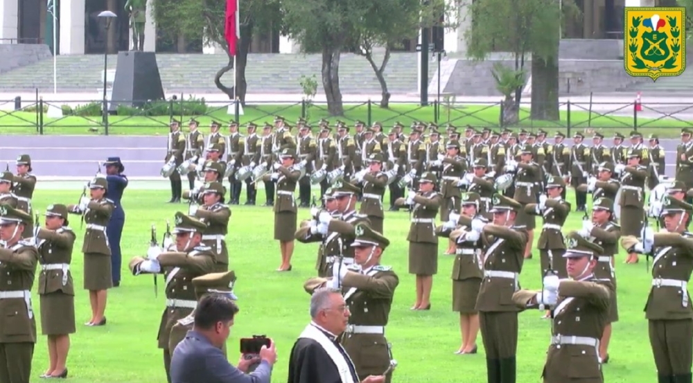 En la solemne ceremonia de entrega de Espadines a los alumnos de Primer año y de Sables a los alumnos de Segundo año, se realizó en el estadio de la Escuela de Carabineros de Chile.