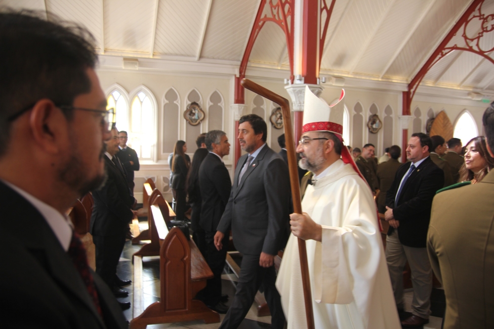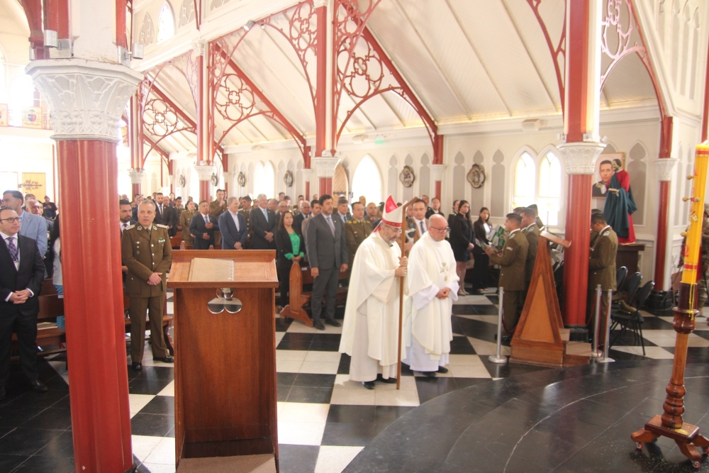 La eucaristía fue concelebrada por el Obispo de Arica, Monseñor Moisés Atisha, y contó con la presencia de las máximas autoridades regionales, encabezadas por el Jefe de Zona, General Álvaro Martínez; el Delegado Presidencial Regional, Cristian Sayes; en representación del Gobernador Regional, el consejero Ignacio Gómez, el consejero Nino Estay, seremis, jefes de servicios, cuerpo consular e invitados especiales.