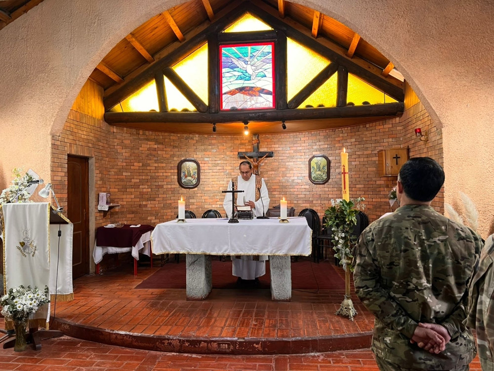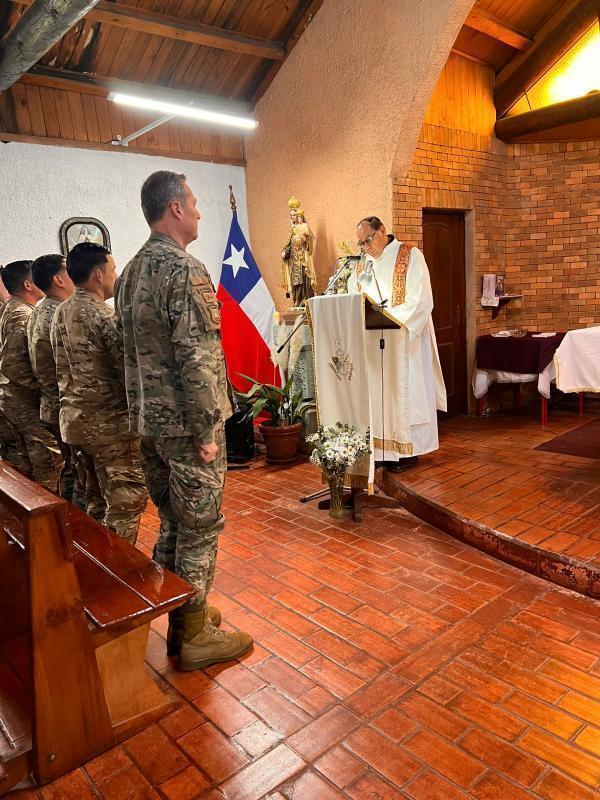 En la Capilla del Destacamento de Montaña Nr. 17 Los Ángeles, el Capellán Auxiliar Diácono Som. Omar Aguilera Illanes celebra un Responso por 7mo. Aniversario del fallecimiento del Teniente Coronel Alfredo Arriagada Silva (Q.E.P.D.), quien fuera el Comandante de la Compañía de Ingenieros Nr. 3 “Los Ángeles”.