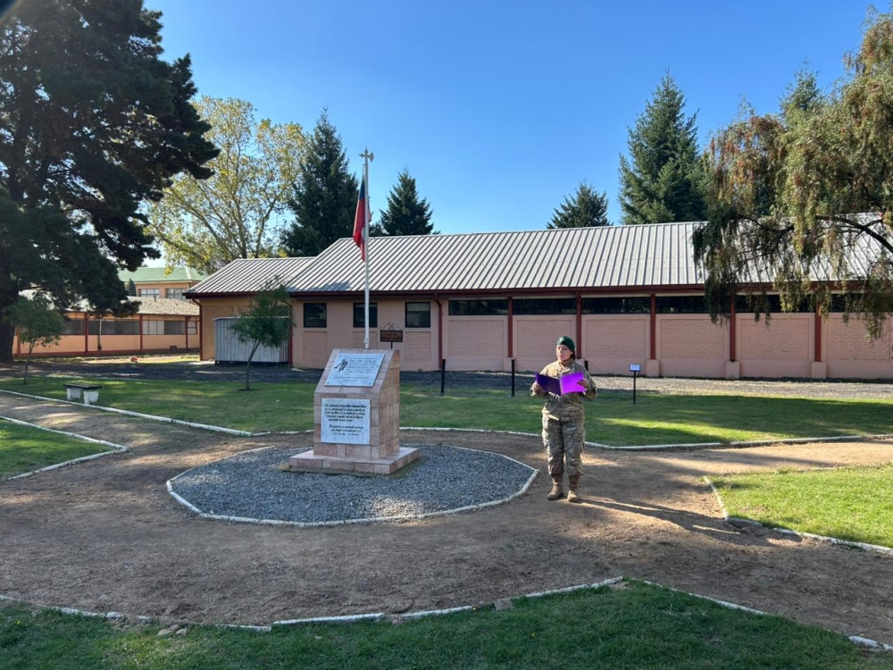 El Comandante del Destacamento Coronel Gonzalo Lazo Santos, hace uso de la palabra y agradece al actual Comandante de la Compañía de Ingenieros y a todos sus integrantes por la preocupación que tienen para recordar a un cámara de arma que acompañó a nuestra querida Unidad, porque Él, nos ha dejado un legado de Liderazgo y patriotismo.