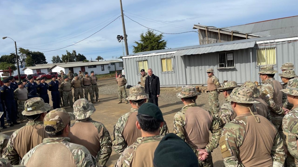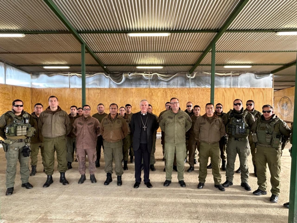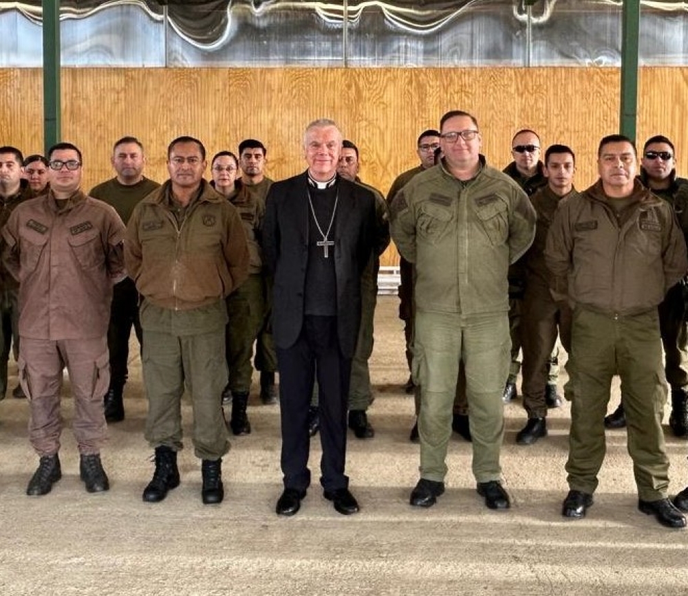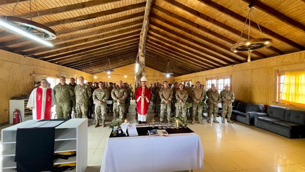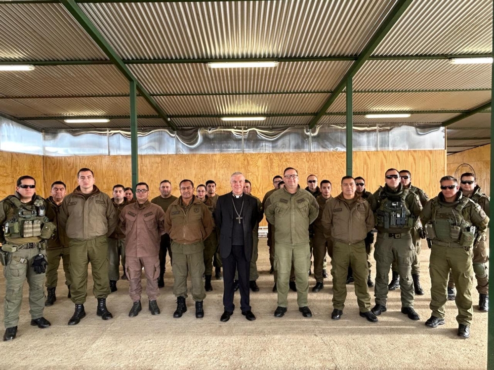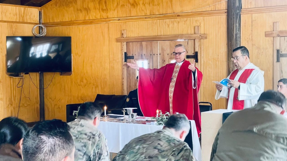 Con la visita del Obispo Castrense de Chile, Monseñor Pedro Ossandón y el Capellán Jefe del Servicio Religioso de la Armada, P. Fernando Jarpa, se celebró el Domingo de Ramos en la Macrozona sur de la Araucanía en el COP de Carabineros en Los Álamos.