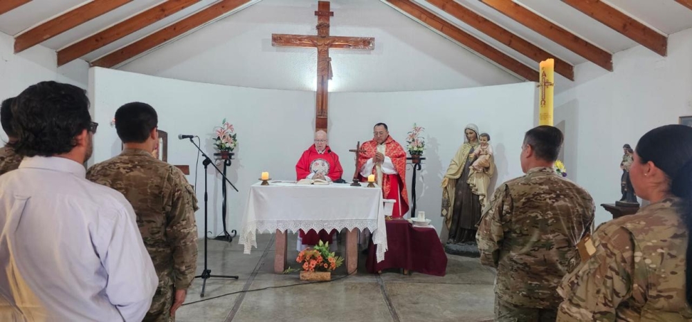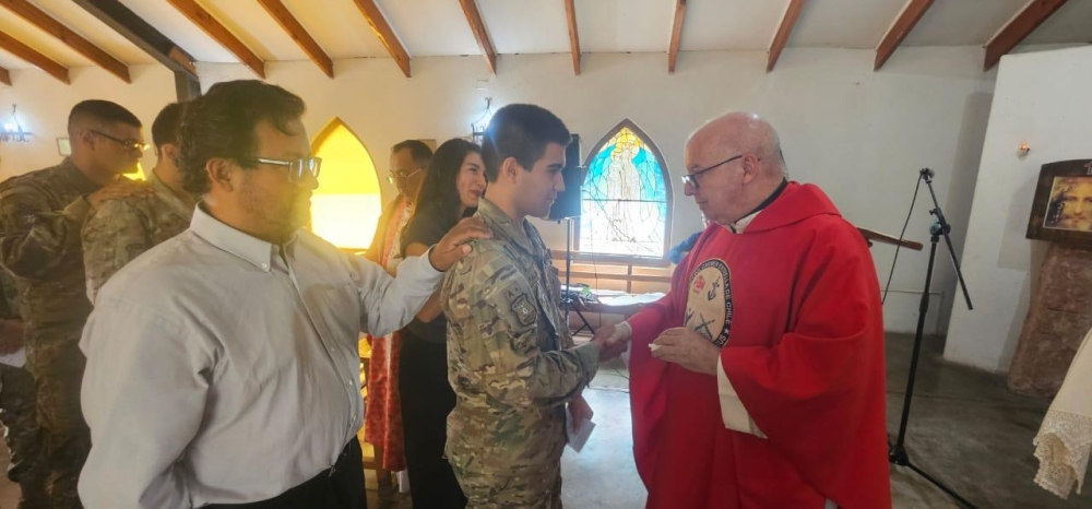 Soldados conscriptos, hombres y mujeres, que cumplen sus servicio militar en el Destacamento de Montaña n.3 Yungay, recibieron el sacramento de la Confirmación.