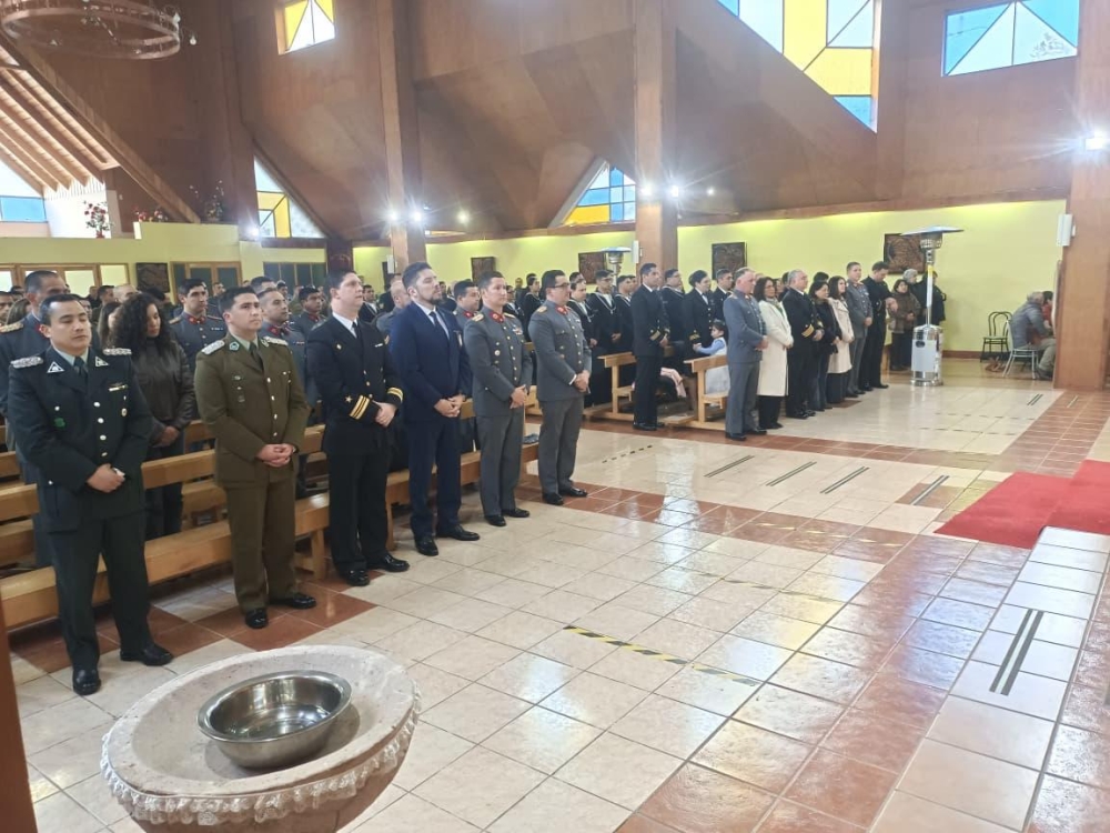 Con la participación de las diferentes delegaciones de las fuerzas Armadas de Orde y seguridad pública, el Obispo Castrense de Chile Monseñor Pedro Ossandón Buljevic, Junto al párroco y capellán ad honorem P. José Vera, Vicario General del Vicariato Apostólico de Aysén y el capellán de Ejército, P. Jorge Mardones, celebraron la Santa Misa.