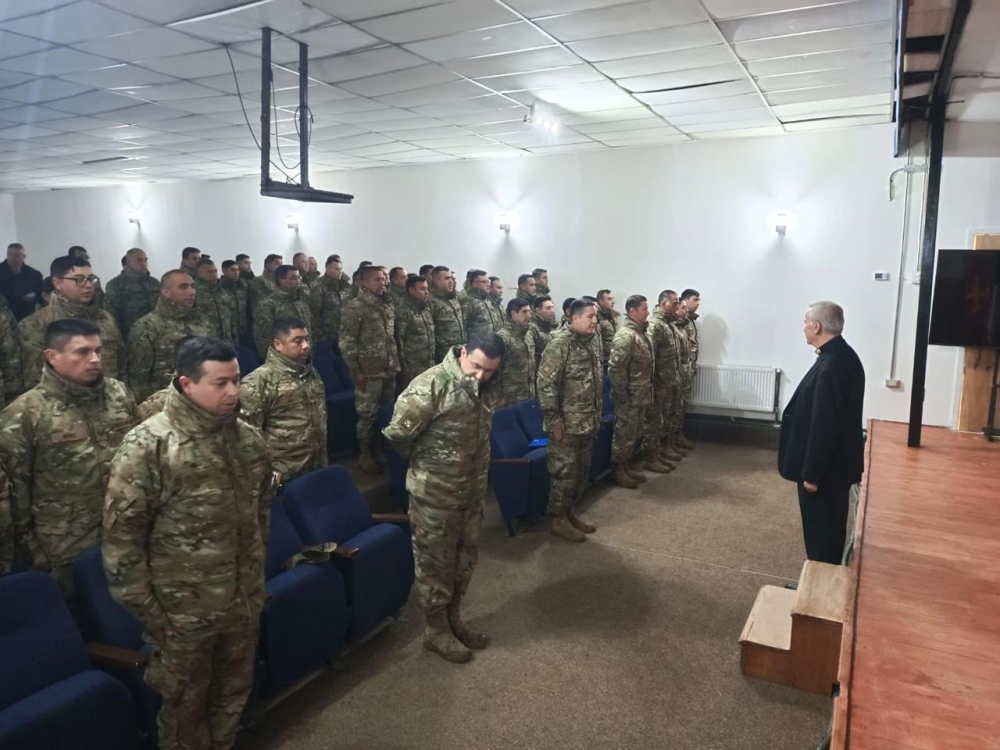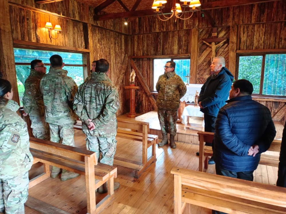 La visita del obispo se realizó acompañado del capellán P. José Vera y al capellán de Ejército, P. Jorge Mardones.