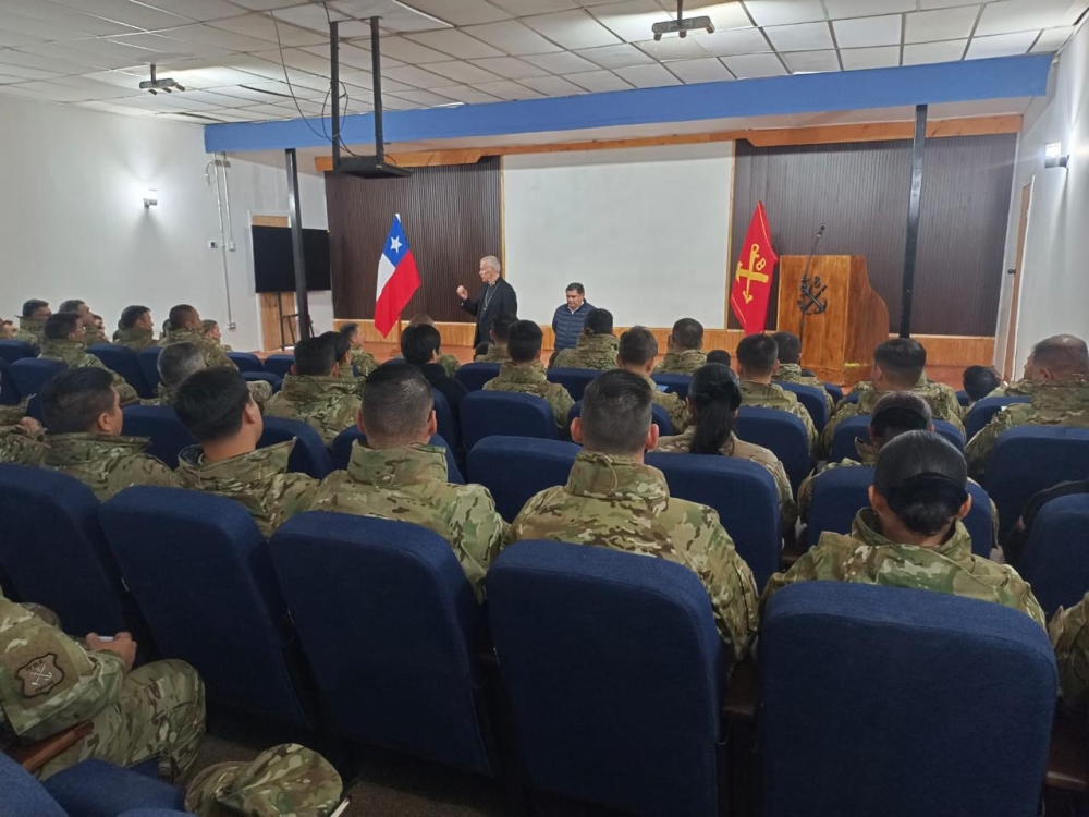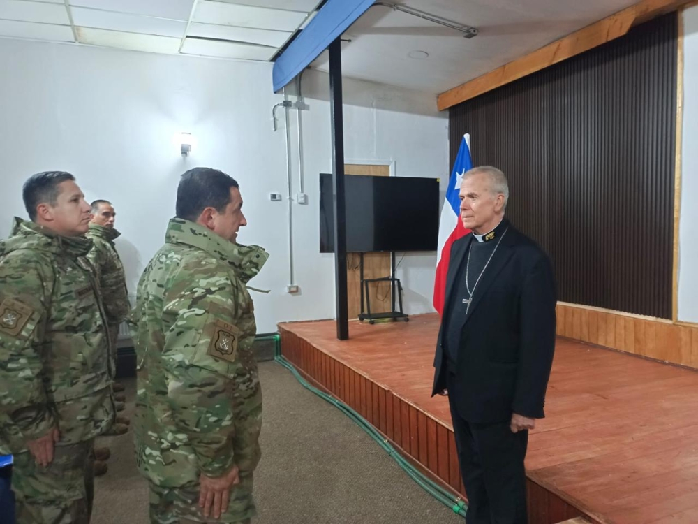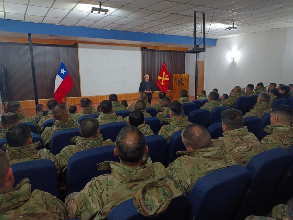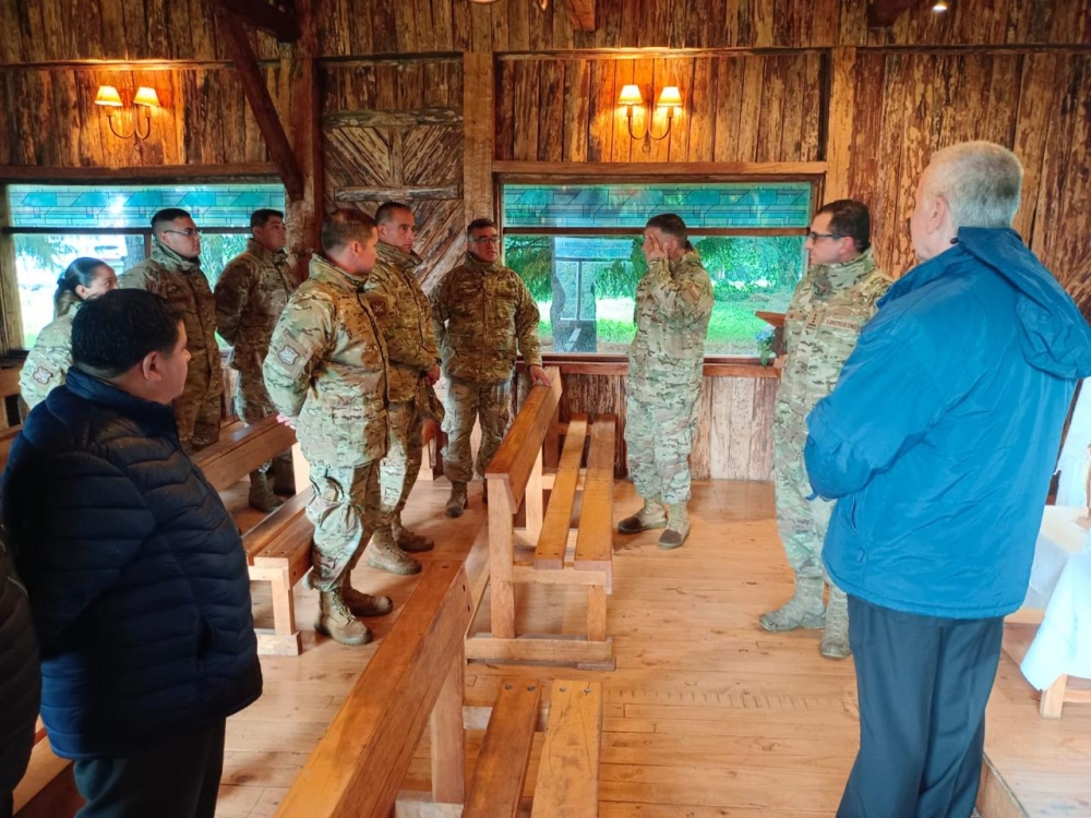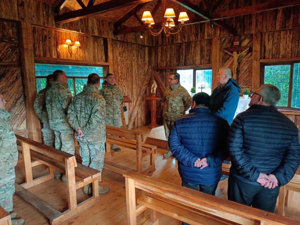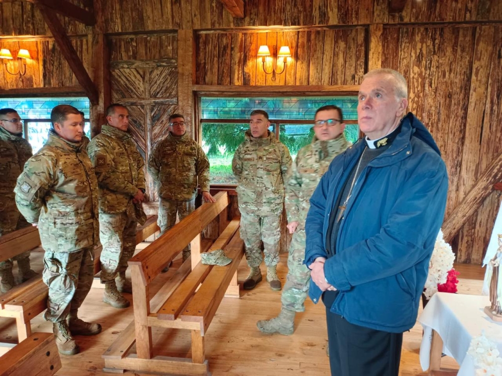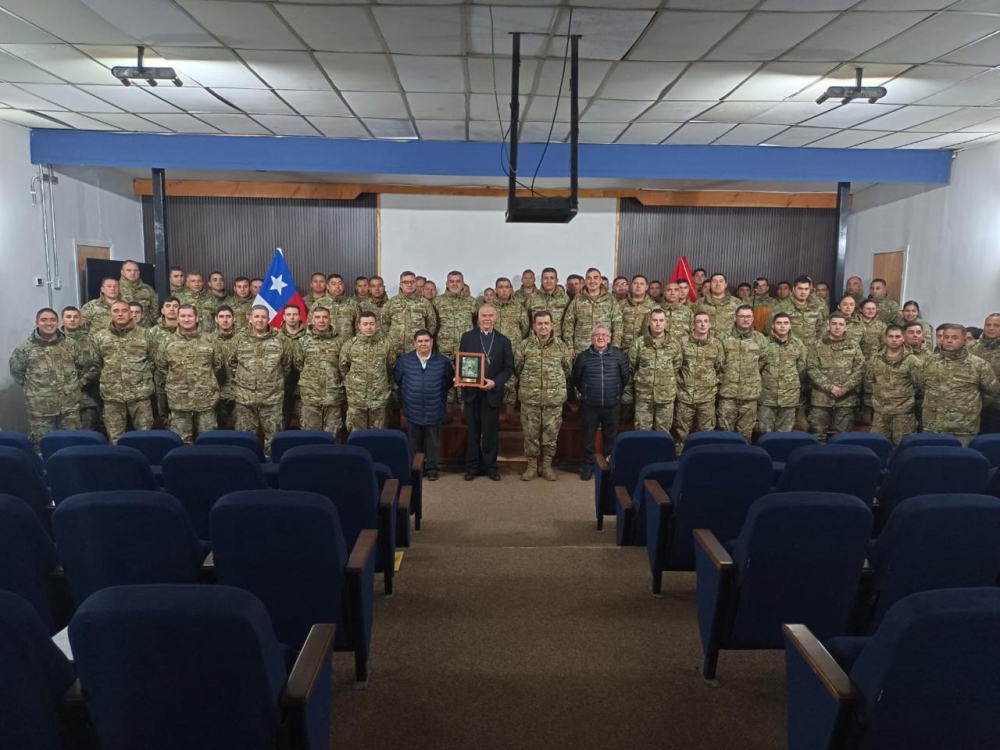 El obispo Castrense de Chile Monseñor Pedro Ossandón Buljevic, visita el Regimiento N°8 “Chiloé”, unidad militar dependiente de la IV División de Ejército con base en Puerto Aysén, al mando del Coronel Marco Cid Seguel.