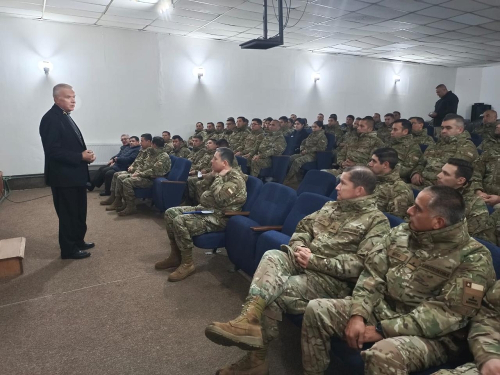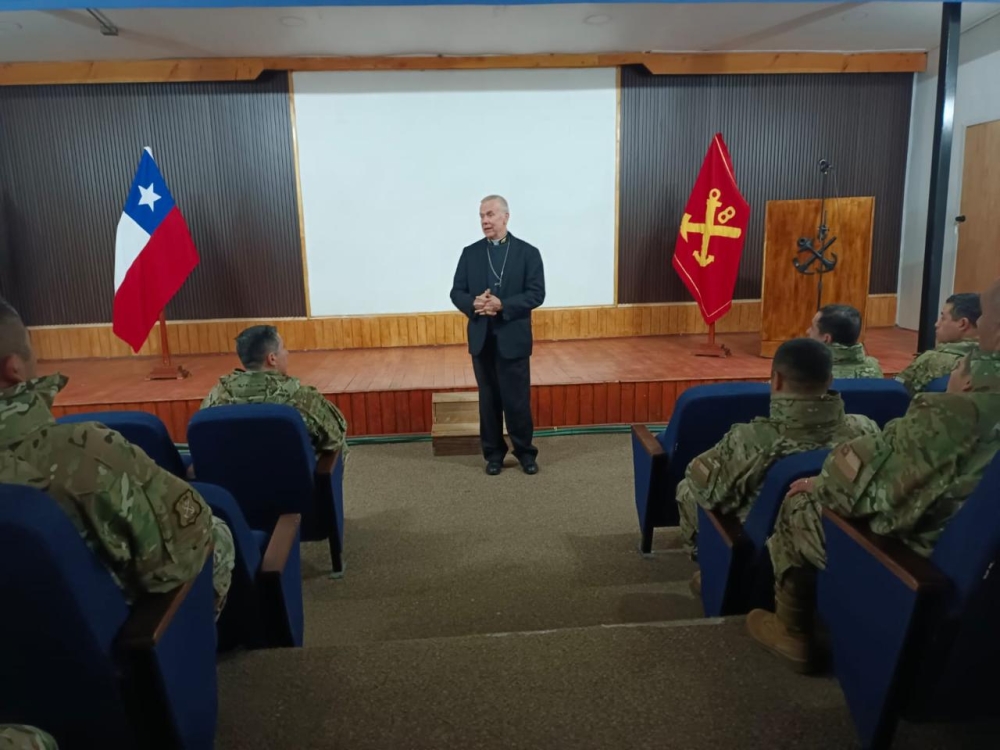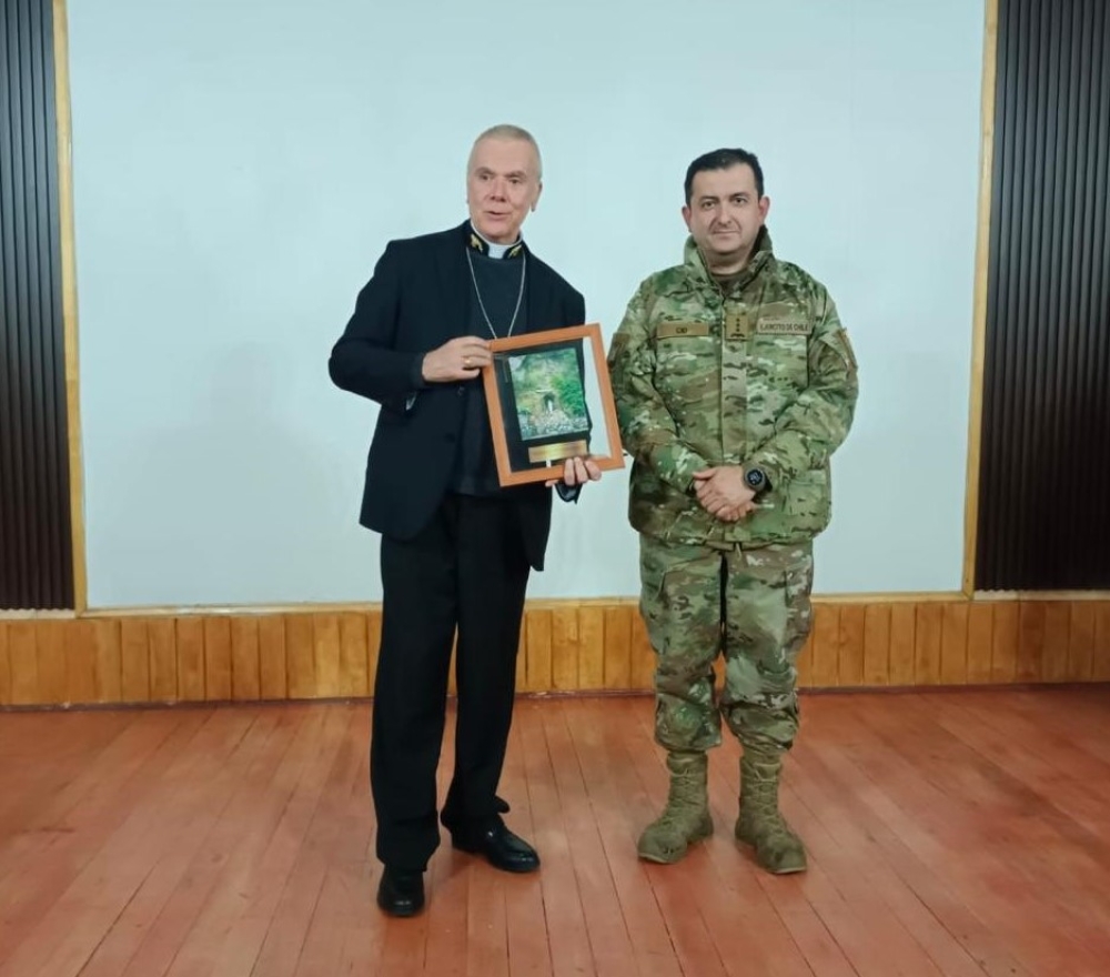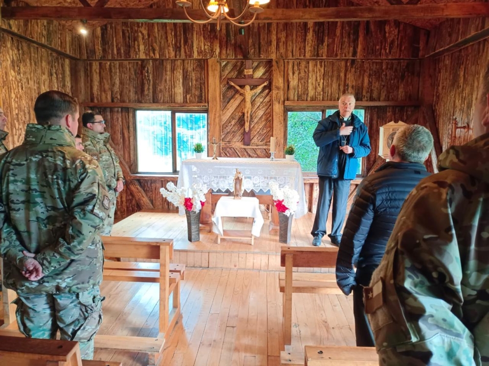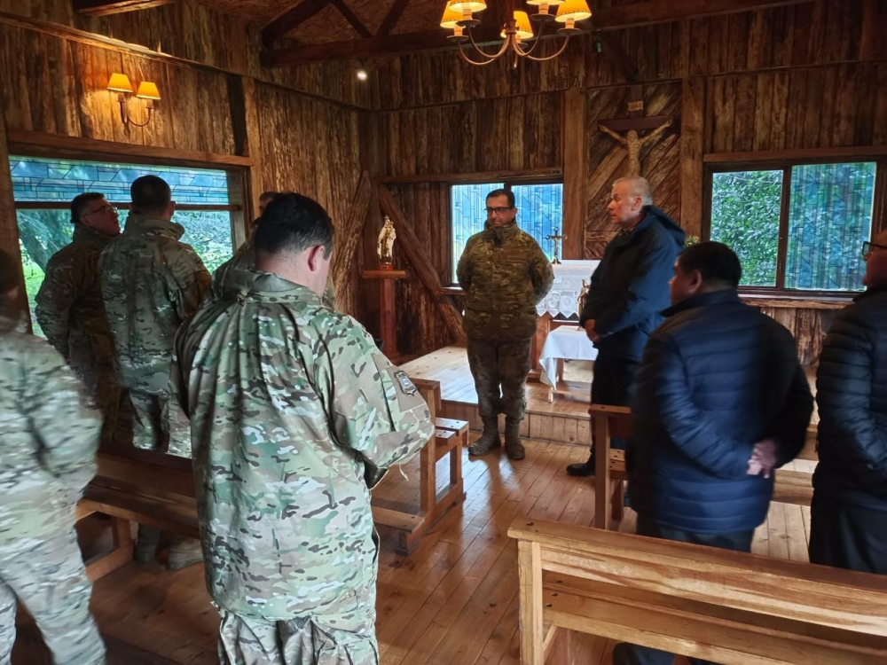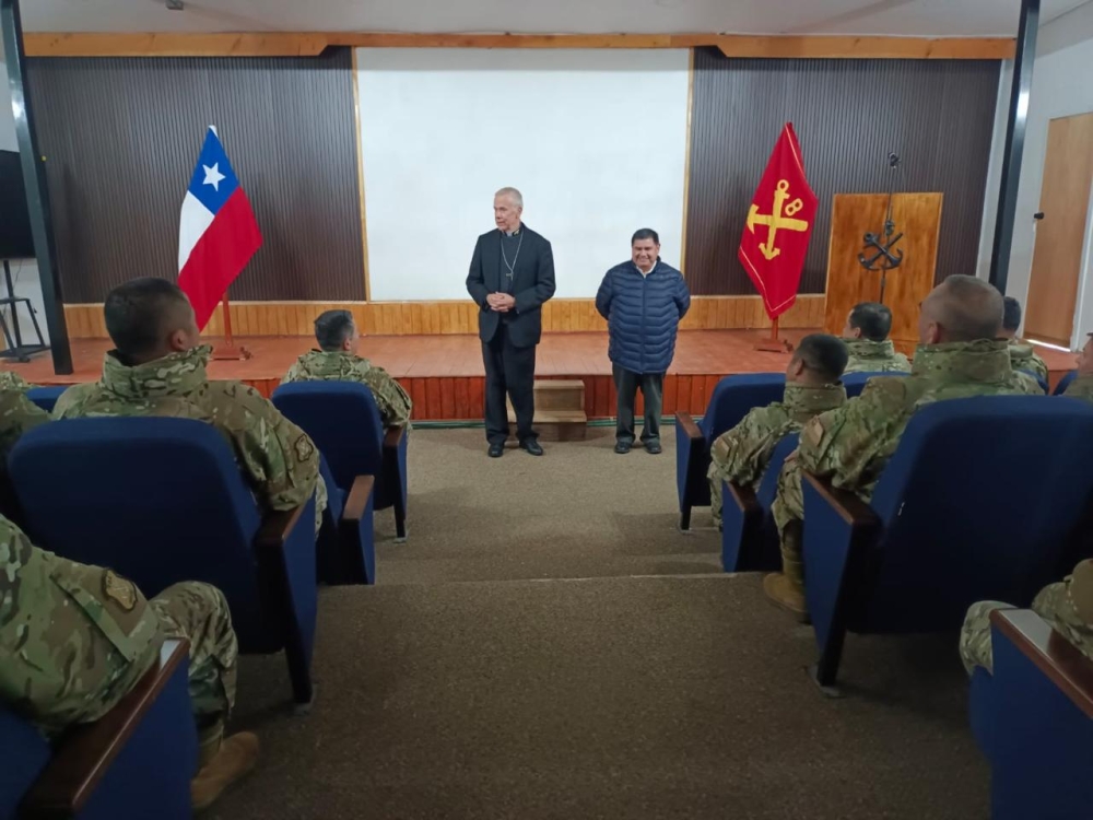 El obispo Castrense de Chile Monseñor Pedro Ossandón Buljevic, visita el Regimiento N°8 “Chiloé”, unidad militar dependiente de la IV División de Ejército con base en Puerto Aysén, al mando del Coronel Marco Cid Seguel.