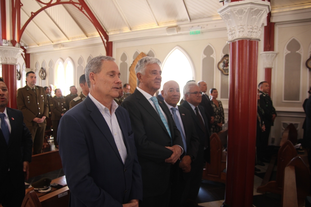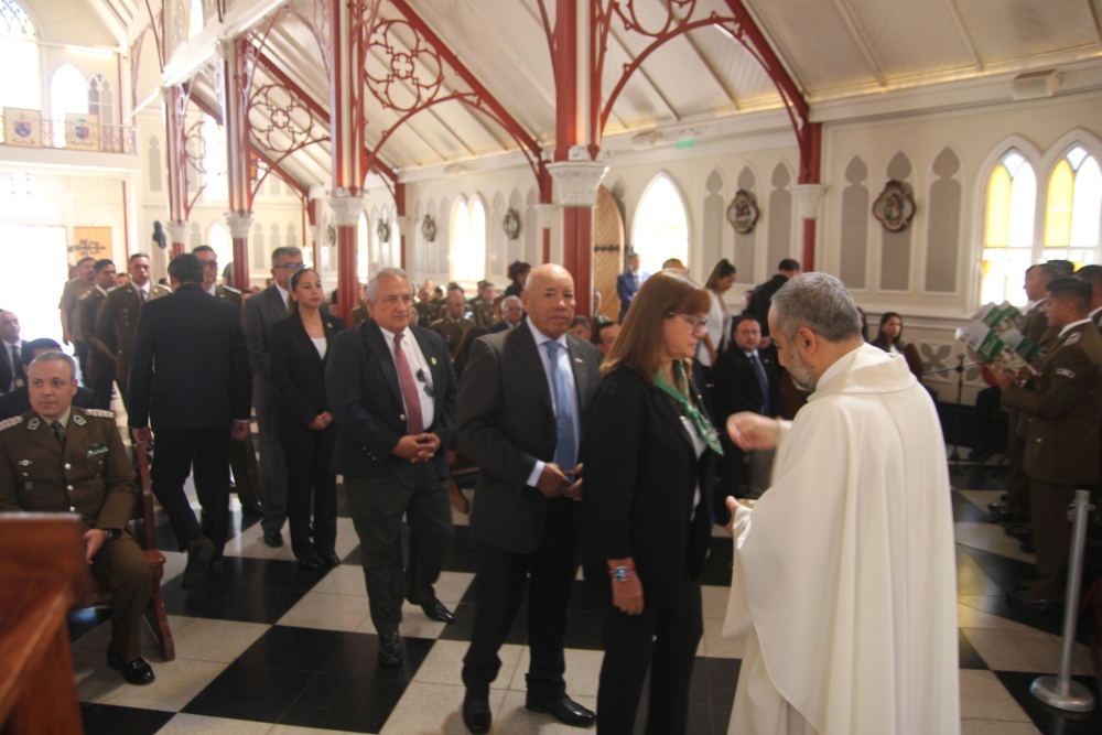 La eucaristía fue concelebrada por el Obispo de Arica, Monseñor Moisés Atisha, y contó con la presencia de las máximas autoridades regionales, encabezadas por el Jefe de Zona, General Álvaro Martínez; el Delegado Presidencial Regional, Cristian Sayes; en representación del Gobernador Regional, el consejero Ignacio Gómez, el consejero Nino Estay, seremis, jefes de servicios, cuerpo consular e invitados especiales.