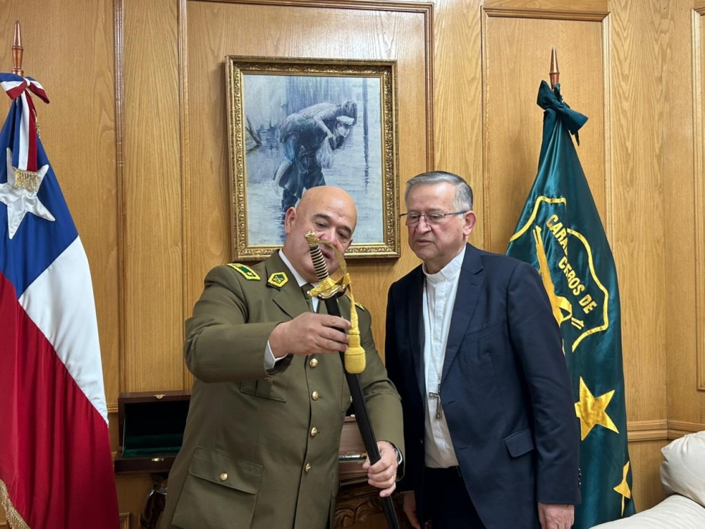 En el contexto de la proximidad del aniversario 99 de Carabineros de Chile, la mañana de este viernes 24 de abril, el Arzobispo, René Rebolledo Salinas, junto al Obispo Auxiliar, Enrique Balzan Caruana, visitaron al Jefe de la Zona de Carabineros Coquimbo, General Christian Brebi Sáez, y a sus colaboradores, con el propósito de saludarles, felicitarles y expresarles el acompañamiento de la Iglesia.