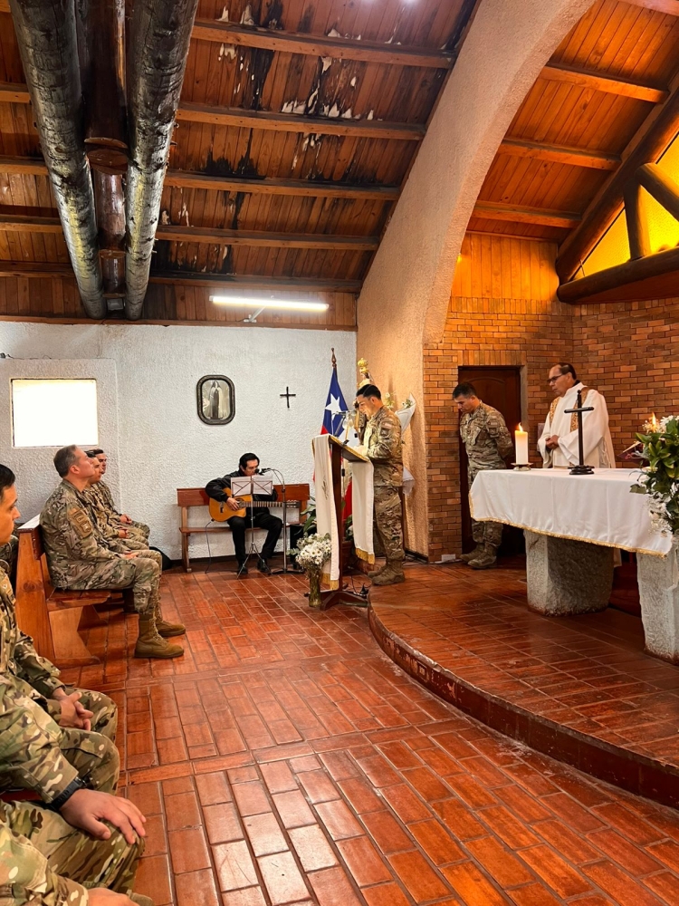 En la Capilla del Destacamento de Montaña Nr. 17 Los Ángeles, el Capellán Auxiliar Diácono Som. Omar Aguilera Illanes celebra un Responso por 7mo. Aniversario del fallecimiento del Teniente Coronel Alfredo Arriagada Silva (Q.E.P.D.), quien fuera el Comandante de la Compañía de Ingenieros Nr. 3 “Los Ángeles”.